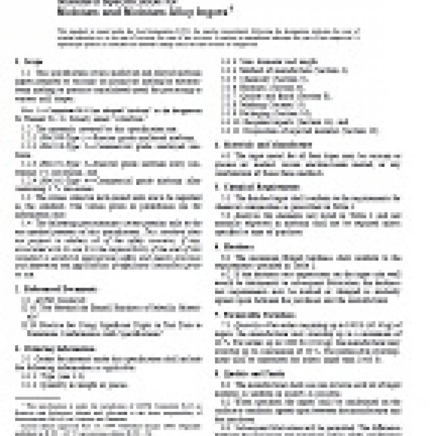 1.1 This specification covers unalloyed and alloyed niobium ingots prepared by vacuum- or plasma-arc melting or electron-beam melting to produce consolidated metal for processing to various mill shapes.