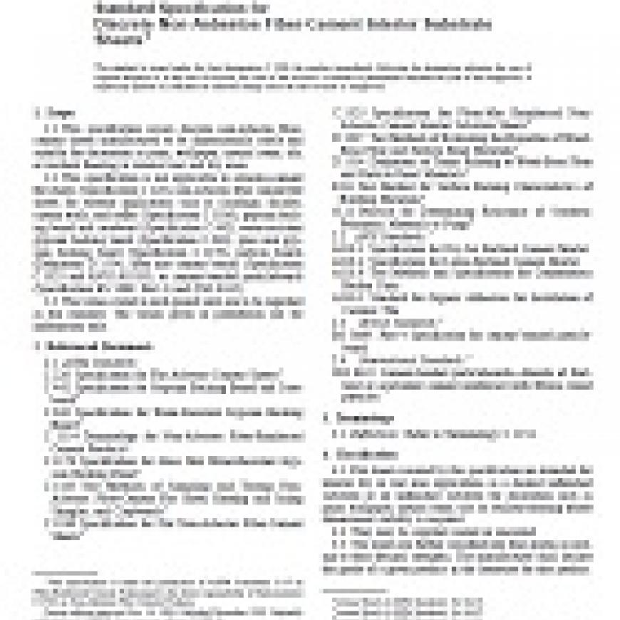 1.1 This specification covers discrete non-asbestos fiber-cement sheets manufactured to be dimensionally stable and suitable for decoration as paint, wallpaper, natural stone, tile, or resilient flooring in internal wet and dry areas.