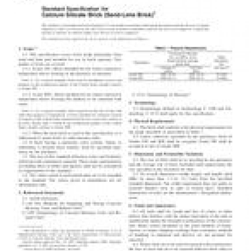1.1 This specification covers brick made principally from sand and lime and intended for use in brick masonry. Two grades of brick are covered: