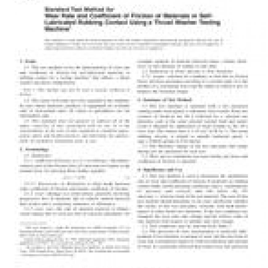 1.1 This test method covers the determination of wear rate and coefficient of friction for self-lubricated materials in rubbing contact by a testing machine that utilizes a thrust washer specimen configuration.