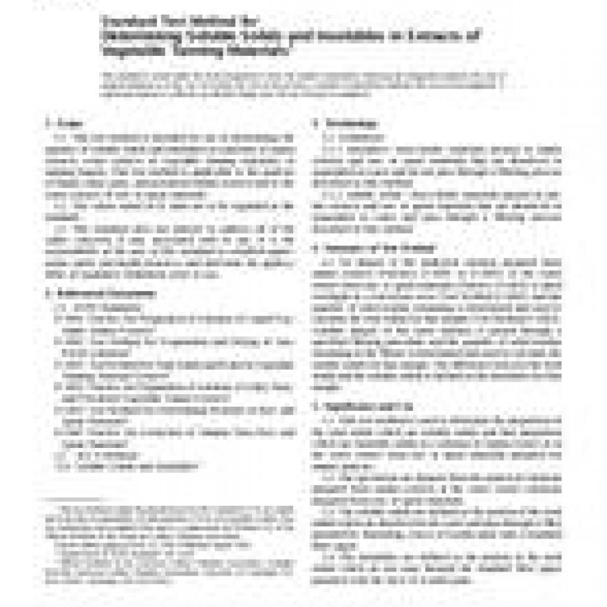 ASTM D6402-99 Standard Test Method for Determing Soluble Solids and Insolubles in Extracts of Vegetable Tanning Materials