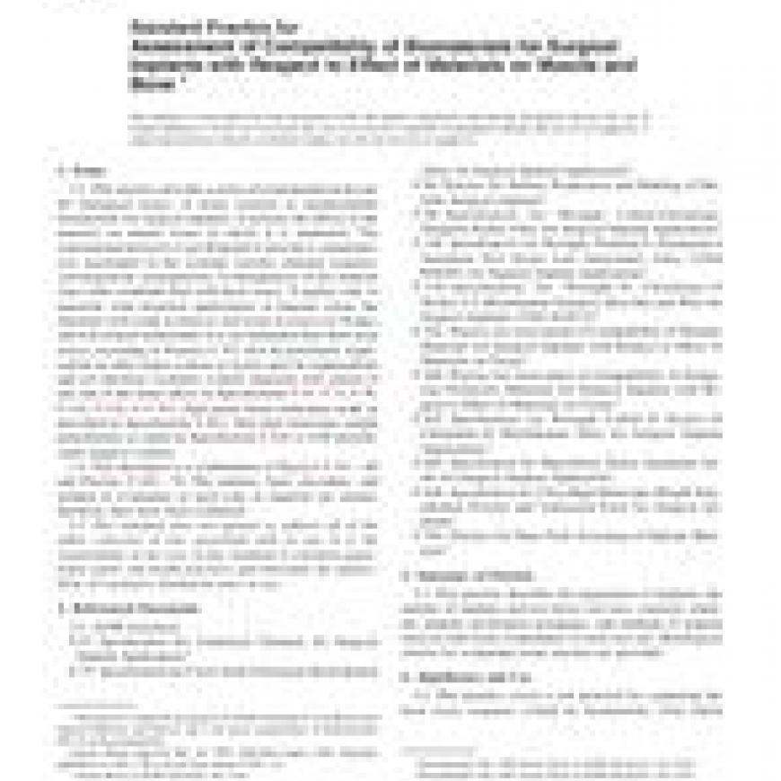 ASTM F981-99 Standard Practice for Assessment of Compatibility of Biomaterials for Surgical Implants with Respect to Effect of Materials on Muscle and Bone