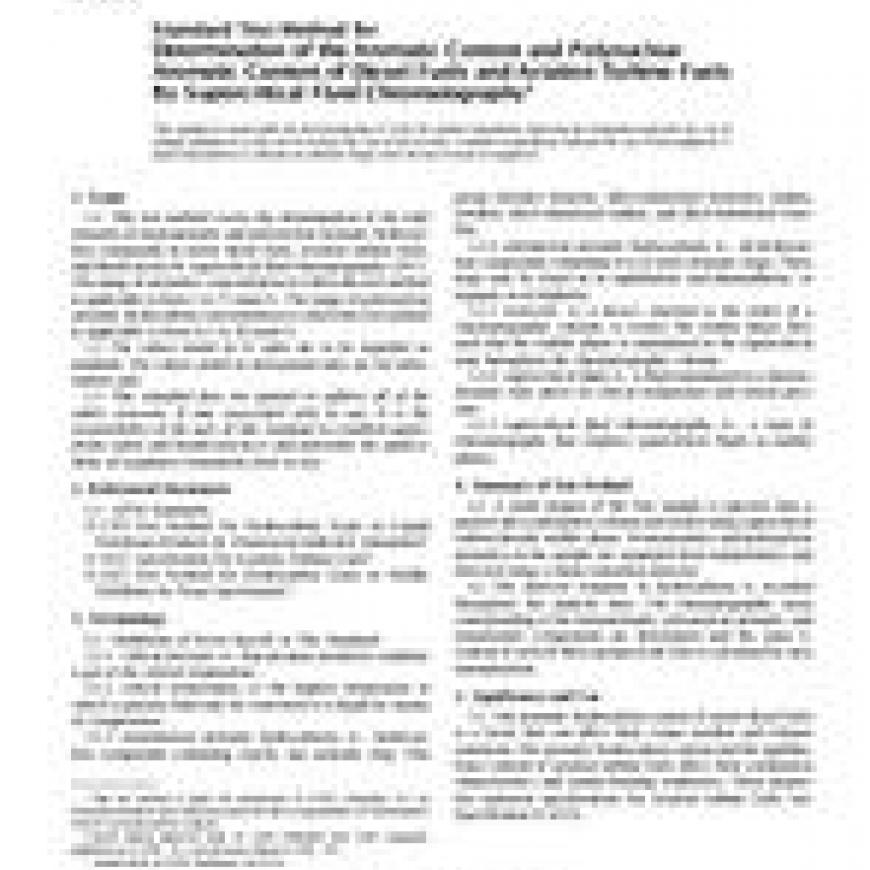 ASTM D5186-99 Standard Test Method for Determination of Aromatic Content and Polynuclear Aromatic Content of Diesel Fuels and Aviation Turbine Fuels by Supercritical Fluid Chromatography
