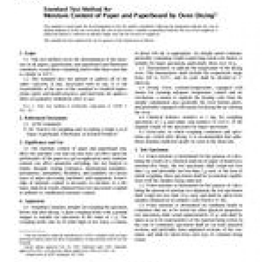 1.1 This test method covers the determination of the moisture in all papers, paperboards, and paperboard and fiberboard containers, except those containing matter other than water that is volatile at 105C.