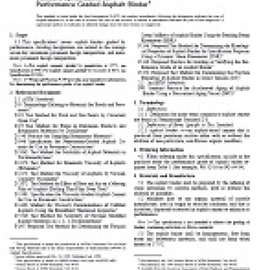 1.1 This specification covers asphalt binders graded by performance. Grading designations are related to the average seven-day maximum pavement design temperature, and minimum pavement design temperature.