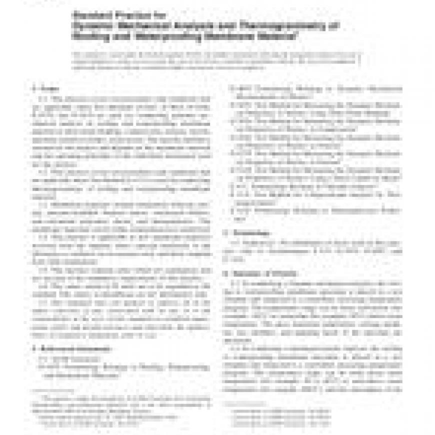 ASTM D6382-99 Standard Practice for Dynamic Mechanical Analysis and Thermogravimetry of Roofing and Waterproofing Membrane Material