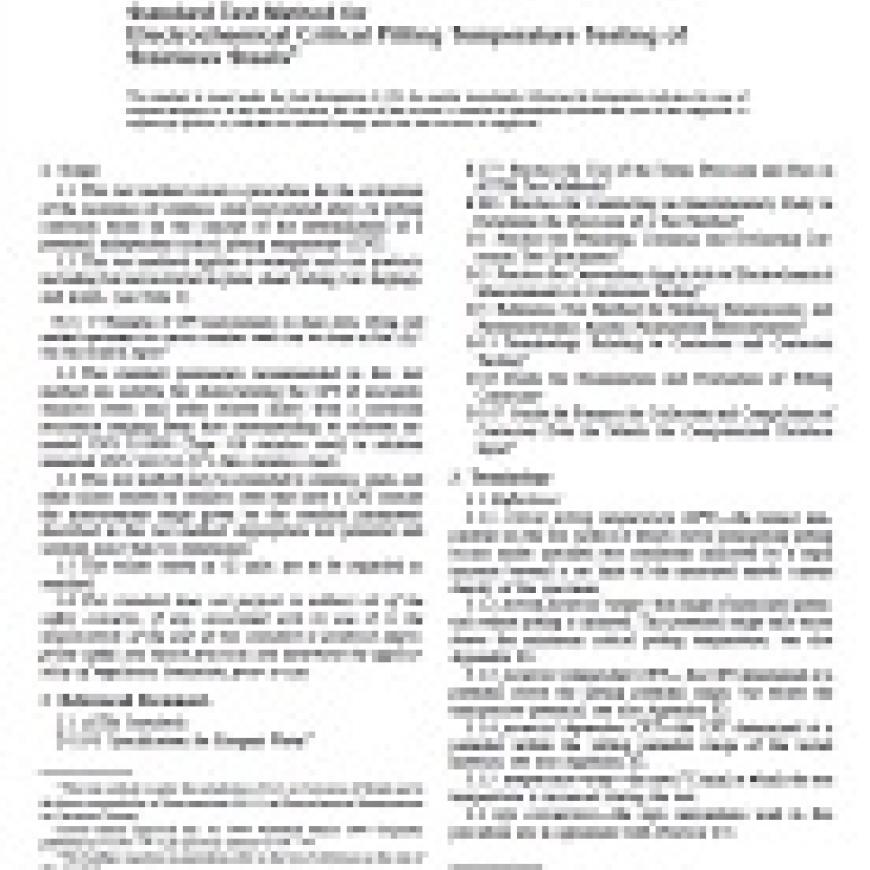 ASTM G150-99 Standard Test Method for Electrochemical Critical Pitting Temperature Testing of Stainless Steels