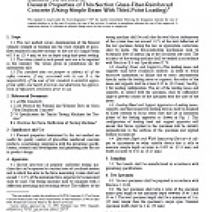 1.1 This test method covers determination of the modulus of rupture in bending and the flexural proportional elastic limit of glass-fiber reinforced concrete sections by the use of a simple beam of 1.0 in. (25.4 mm) or less in depth using third-point loading.