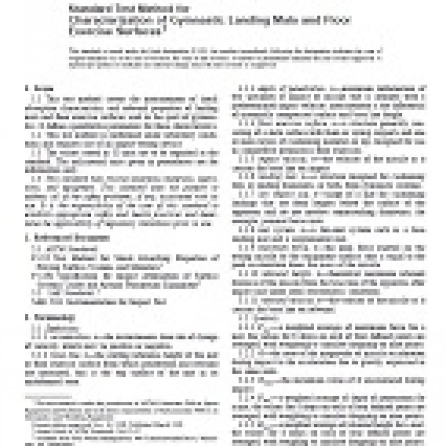 ASTM F1931-98 Standard Test Method for Characterization of Gymnastic Landing Mats and Floor Exercise Surfaces