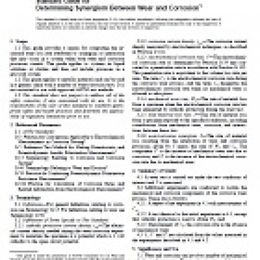 1.1 This guide provides a means for computing the increased wear loss rate attributed to synergism or interaction that may occur in a system when both wear and corrosion processes coexist. The guide applies to systems in liquid solutions or slurries and does not include processes in a gas/solid system.