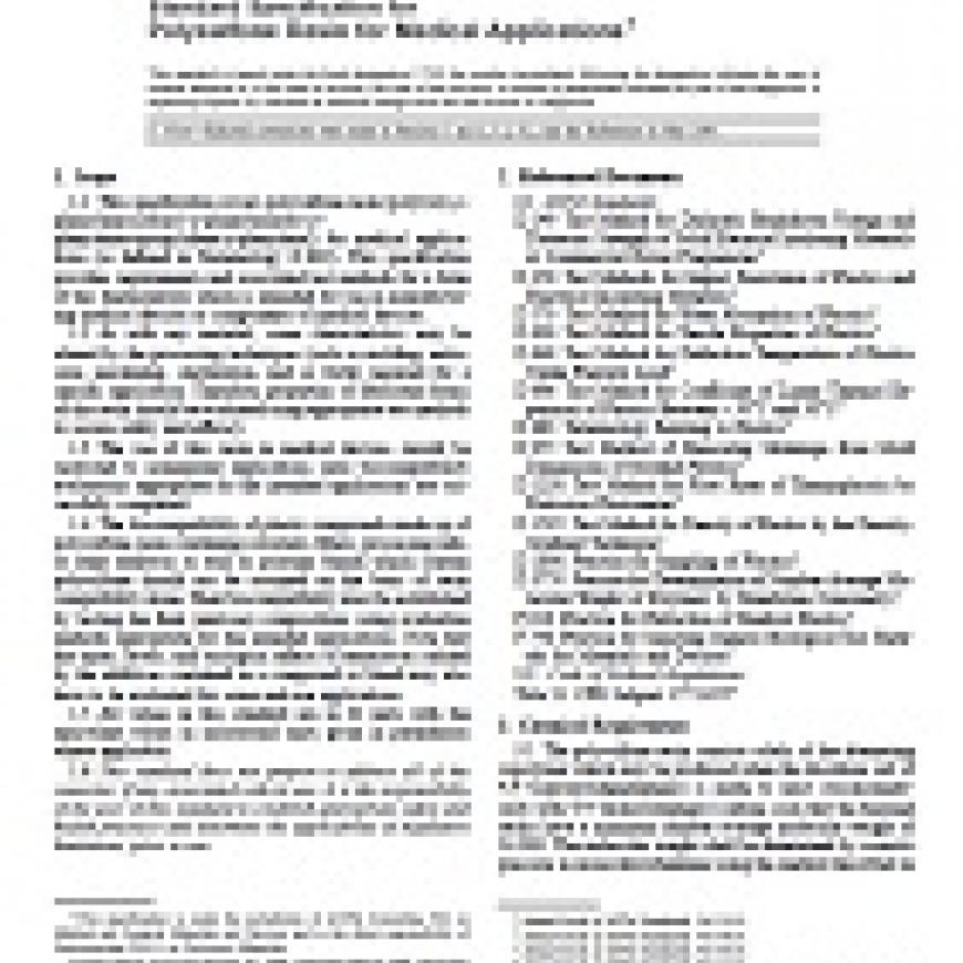1.1 This specification covers polysulfone resin (poly(oxy-p-phenylenesulfonyl-p-phenyleneoxy-p-phenyleneisopropylidene-p-phenylene)) for medical applications (as defined in Terminology D883). This specification provides requirements and associated test methods for a form of this thermoplastic which is intended for use in manufacturing medical devices or components of medical devices.