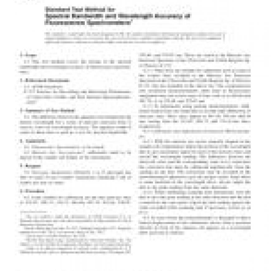 1.1 This test method covers the testing of the spectral bandwidth and wavelength accuracy of fluorescence spectrometers.