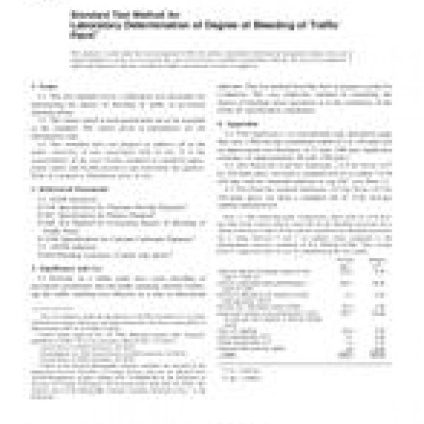 1.1 This test method covers a laboratory test procedure for determining the degree of bleeding of traffic or pavement marking paints.