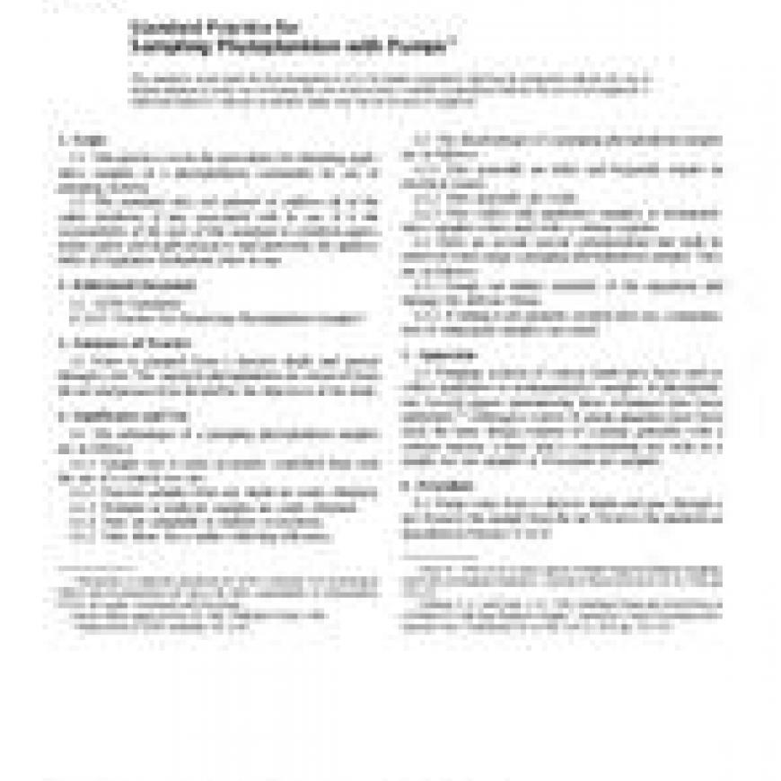 1.1 This practice covers the procedures for obtaining qualitative samples of a phytoplankton community by use of pumping systems.