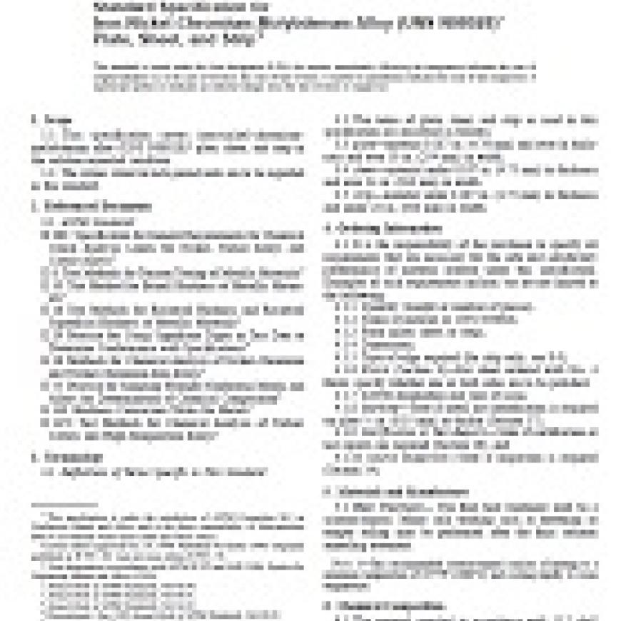 1.1 This specification covers iron-nickel-chromium-molybdenum alloy (UNS N08028)* plate, sheet, and strip in the solution-annealed condition.