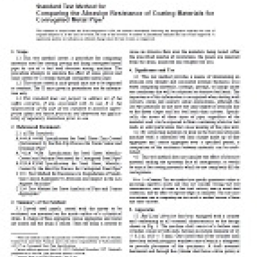 ASTM A926-97 Standard Test Method for Comparing the Abrasion Resistance of Coating Materials for Corrugated Metal Pipe