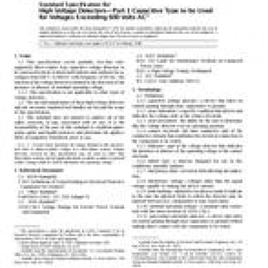 ASTM F1796-97e1 Standard Specification for High Voltage Detectors- Part 1 Capacitive Type to be Used for Voltages Exceeding 600 Volts AC