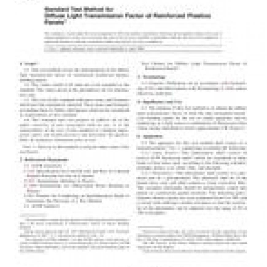 ASTM D1494-97(2001)e1 Standard Test Method for Diffuse Light Transmission Factor of Reinforced Plastics Panels