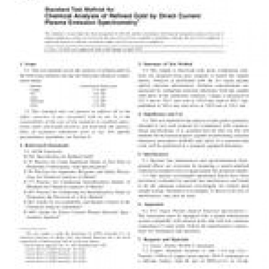 ASTM E1446-92(1997)e1 Standard Test Method for Chemical Analysis of Refined Gold by Direct Current Plasma Emission Spectrometry