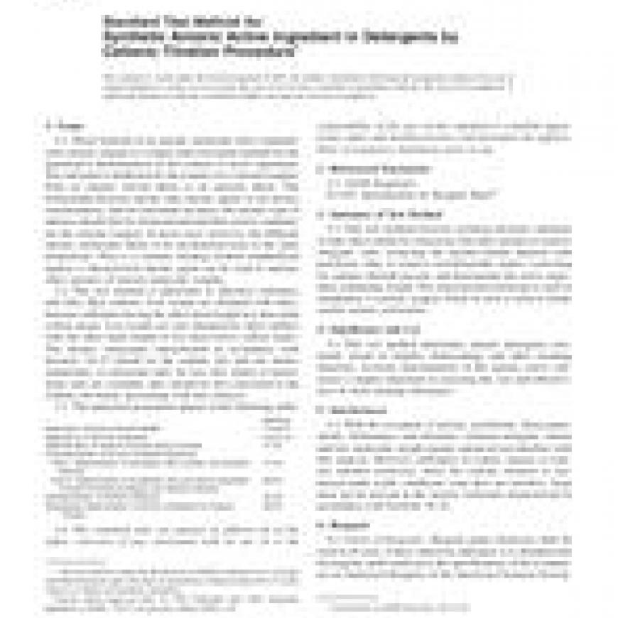 ASTM D1681-92(1997) Standard Test Method for Synthetic Anionic Active Ingredient in Detergents by Cationic Titration Procedure