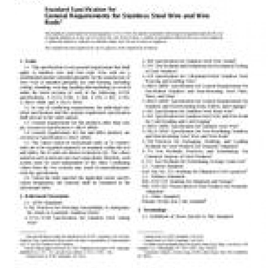 1.1 This specification covers general requirements that shall apply to stainless wire and wire rods. Wire rods are a semifinished product intended primarily for the manufacture of wire. Wire is intended primarily for cold forming, including coiling, stranding, weaving, heading and machining as covered under the latest revision of each of the following ASTM specifications: A313/A313M, A368, A478, A492, A493, A580/A580M and A581/A581M.