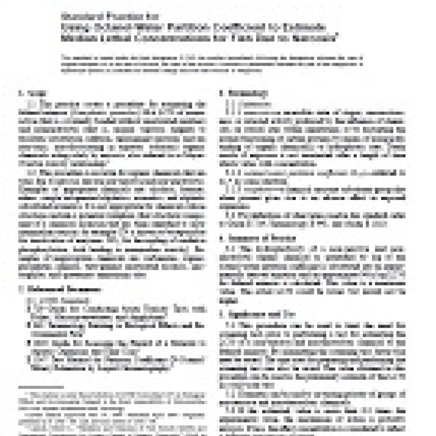 ASTM E1242-97 Standard Practice for Using Octanol-Water Partition Coefficient to Estimate Median Lethal Concentrations for Fish Due to Narcosis