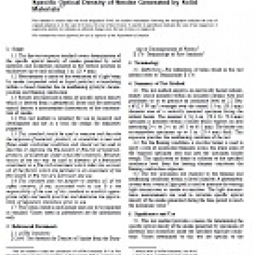 1.1 This fire-test-response standard covers determination of the specific optical density of smoke generated by solid materials and assemblies mounted in the vertical position in thicknesses up to and including 1 in. (25.4 mm).