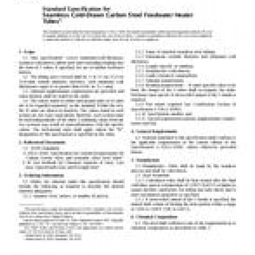 1.1 This specification covers minimum-wall-thickness, seamless cold-drawn carbon steel tubes including bending into the form of U-tubes, if specified, for use in tubular feedwater heaters.