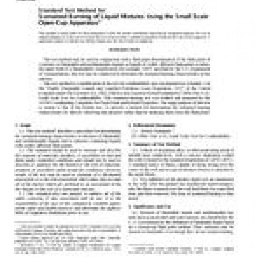ASTM D4206-96(2001) Standard Test Method for Sustained Burning of Liquid Mixtures Using the Small Scale Open-Cup Apparatus