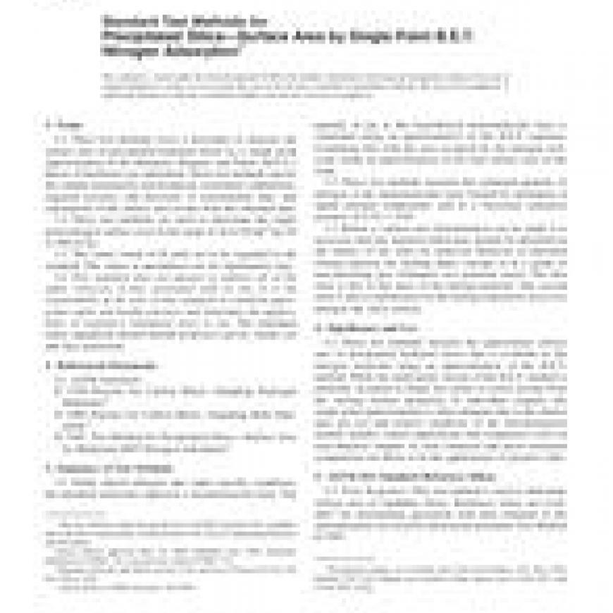ASTM D5604-96(2001) Standard Test Methods for Precipitated Silica - ;Surface Area by Single Point B.E.T. Nitrogen Adsorption