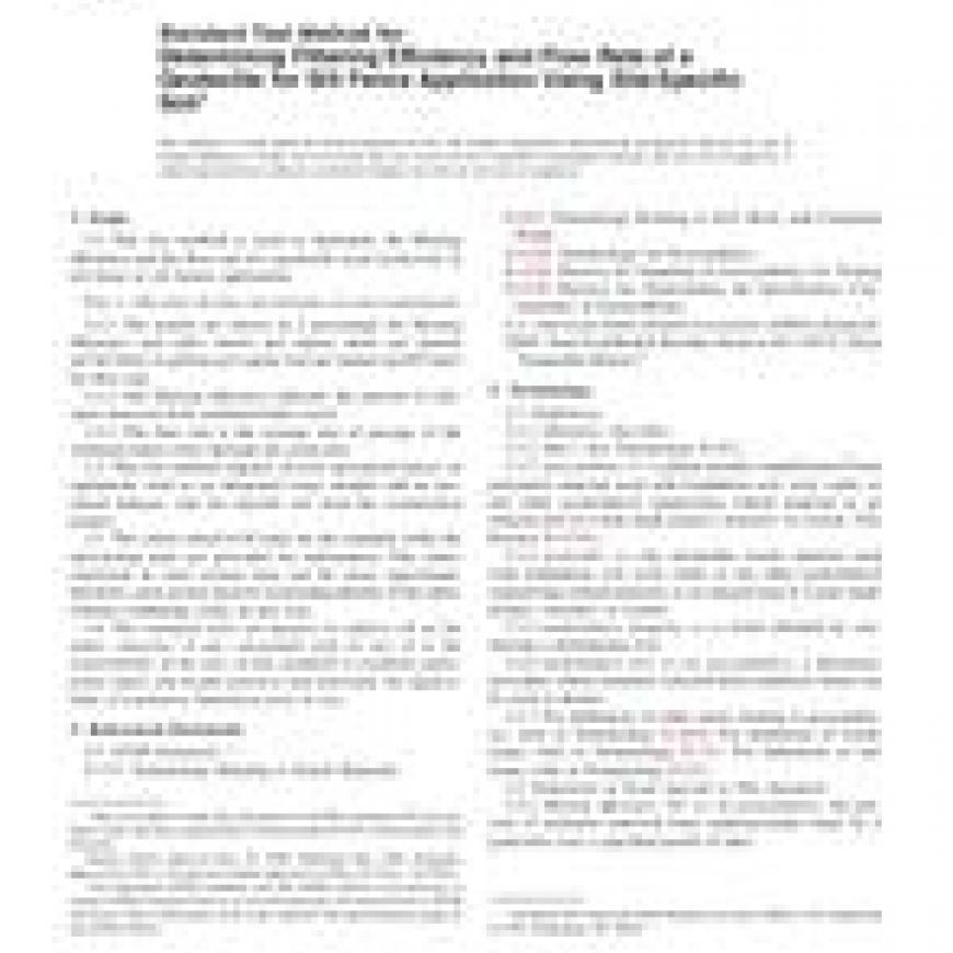 1.1 This test method is used to determine the filtering efficiency and the flow rate of a geotextile used exclusively in silt fence or silt barrier application.
