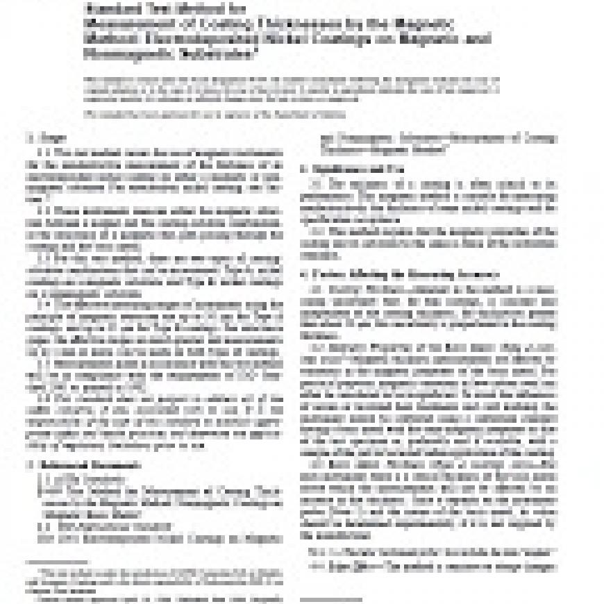 1.1 This test method covers the use of magnetic instruments for the nondestructive measurement of the thickness of an electrodeposited nickel coating on either a magnetic or nonmagnetic substrate. For autocatalytic nickel coating, see Section 7.
