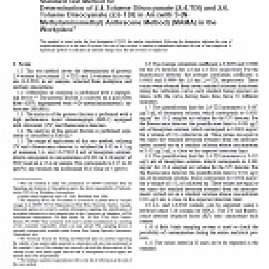 ASTM D5932-96(2002) Standard Test Method for Determination of 2,4-Toluene Diiso cyanate (2,4-TDI) and 2,6-Toluene Diiso cyanate (2,6-TDI) in Air (with 9-(N-Methylaminomethyl) Anthracene Method) (MAMA) in the Workplace
