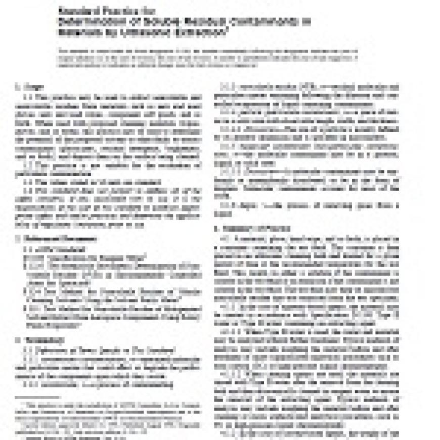 ASTM G136-96 Standard Practice for Determination of Soluble Residual Contaminants in Materials by Ultrasonic Extraction