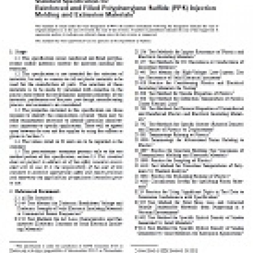 ASTM D4067-96 Standard Specification for Reinforced and Filled Polyphenylene Sulfide (PPS) Injection Molding and Extrusion Materials
