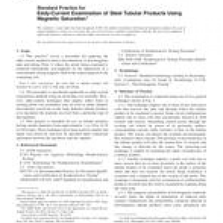 1.1 This practice covers a procedure for applying the eddy-current method to detect discontinuities in ferromagnetic pipe and tubing (Note 1) where the article being examined is rendered substantially non-magnetic by the application of a concentrated, strong magnetic field in the region adjacent to the examining coil.