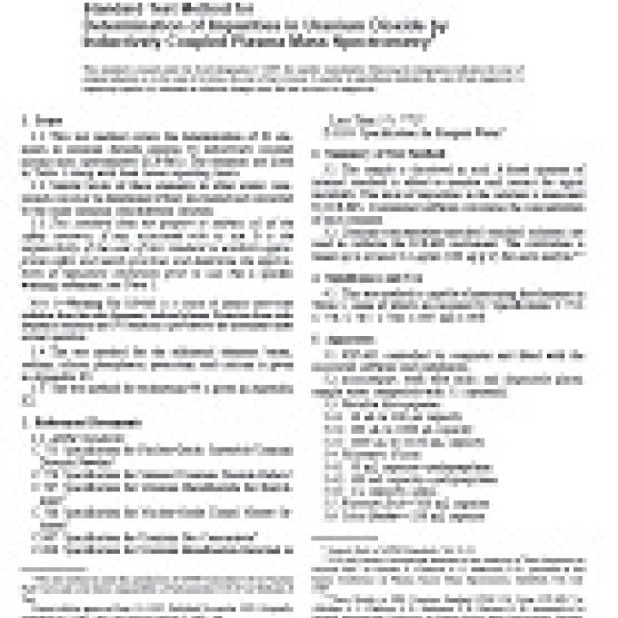 ASTM C1287-95(2001) Standard Test Method for Determination of Impurities in Uranium Dioxide by Inductively Coupled Plasma Mass Spectrometry