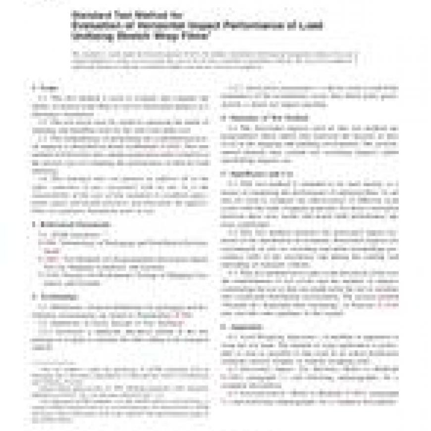 1.3 The methodology of performing the controlled horizontal impacts is described in detail in Methods D4003. This test method will describe only sample preparation and evaluation in the special case of evaluating the performance of film for load unitizing.