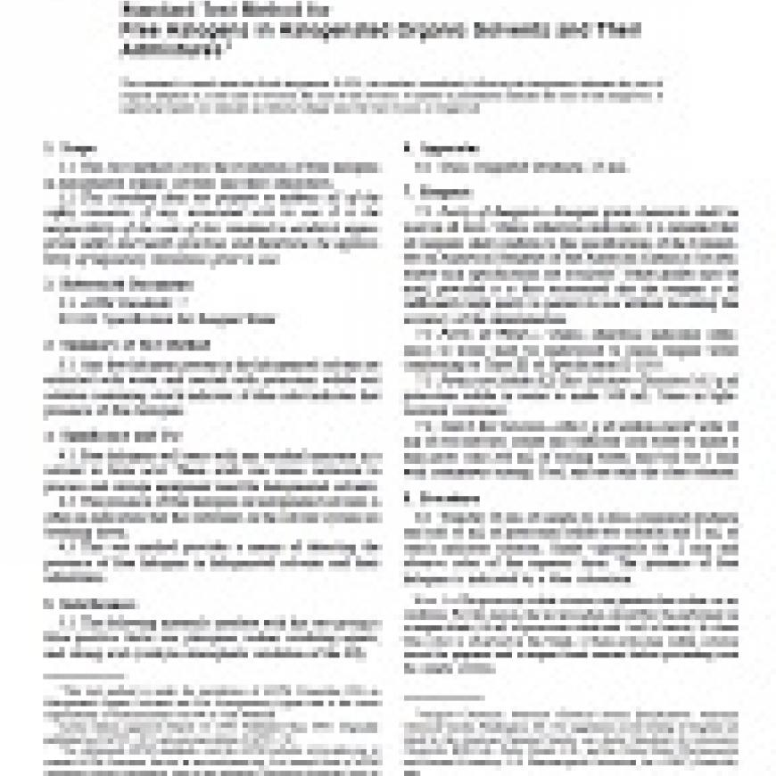 1.1 This test method covers the evaluation of free halogens in halogenated organic solvents and their admixtures.