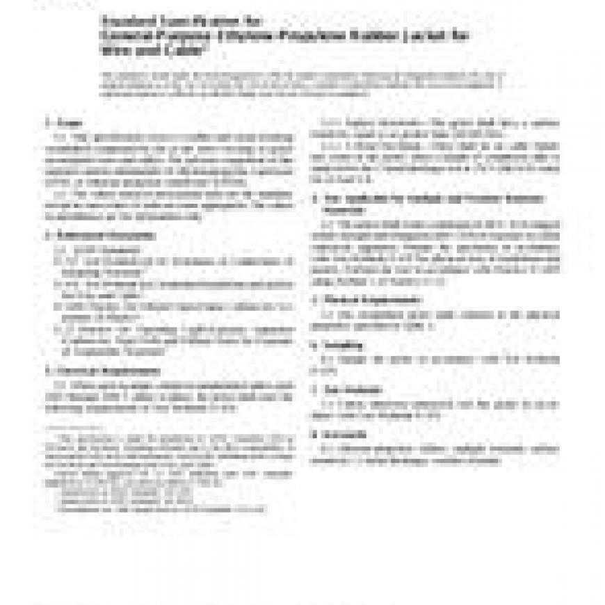 1.1 This specification covers a weather and ozone-resisting crosslinked compound for use as the outer covering or jacket on insulated wires and cables. The polymer component of this material consists substantially of ethylenepropylene copolymer (EPM) or ethylene-propylene terpolymer (EPDM).