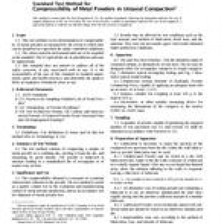 1.1 This test method covers determination of compressibility of metal powders as measured by the extent to which they can be densified in a specified die under controlled conditions.