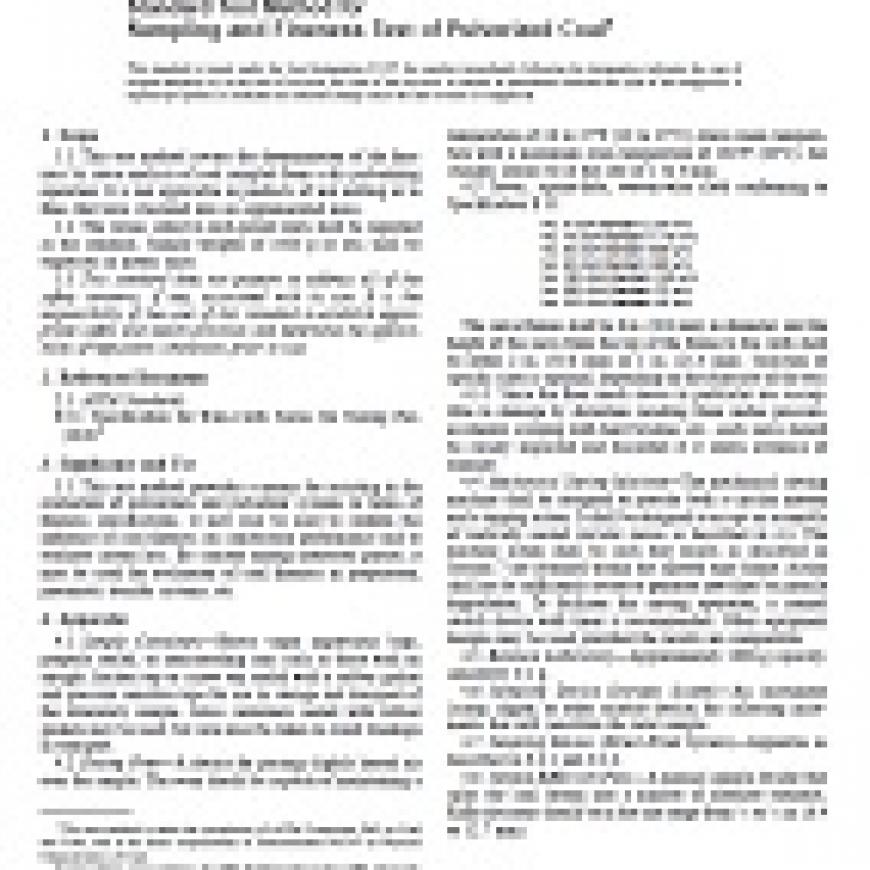 ASTM D197-87(2002) Standard Test Method for Sampling and Fineness Test of Pulverized Coal