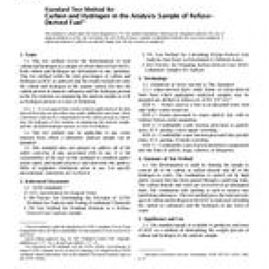 ASTM E777-87(2004) Standard Test Method for Carbon and Hydrogen in the Analysis Sample of Refuse-Derived Fuel