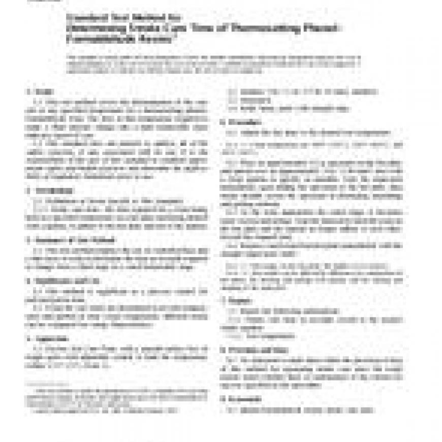 1.1 This test method covers the determination of the cure rate at any specified temperature for a thermosetting phenol-formaldehyde resin. The time at that temperature required to make a fluid mixture change into a hard immovable mass indicates speed of cure.