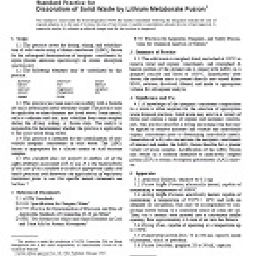 ASTM D4503-86(2003) Standard Practice for Dissolution of Solid Waste by Lithium Metaborate Fusion