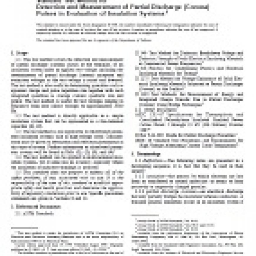 ASTM D1868-93(1998) Standard Test Method for Detection and Measurement of Partial Discharge (Corona) Pulses in Evaluation of Insulation Systems (Withdrawn 2007)