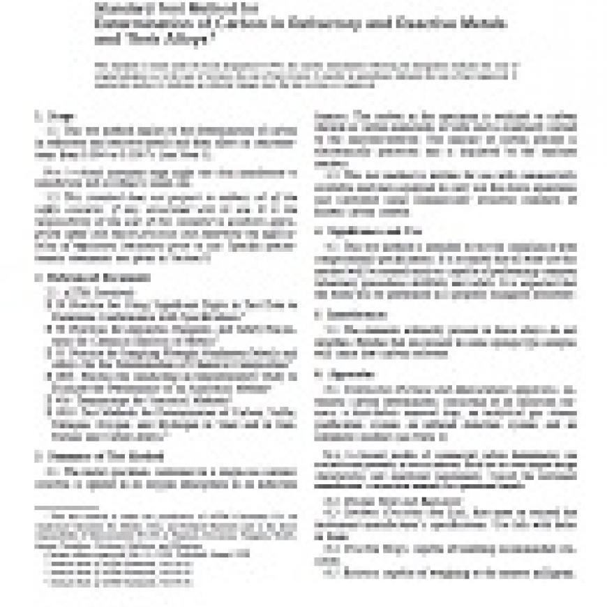 ASTM E1941-98 Standard Test Method for Determination of Carbon in Refractory and Reactive Metals and Their Alloys