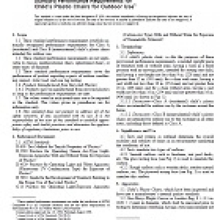 1.3 These standard performance requirements cover the performance of product regarding aspects of outdoor weathering, impact, static load, and rear leg testing.