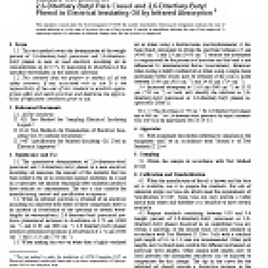 ASTM D2668-96 Standard Test Method for 2,6-Ditertiary-Butyl Para Cresol and 2,6-Ditertiary-Butyl Phenol in Electrical Insulating Oil by Infrared Absorption