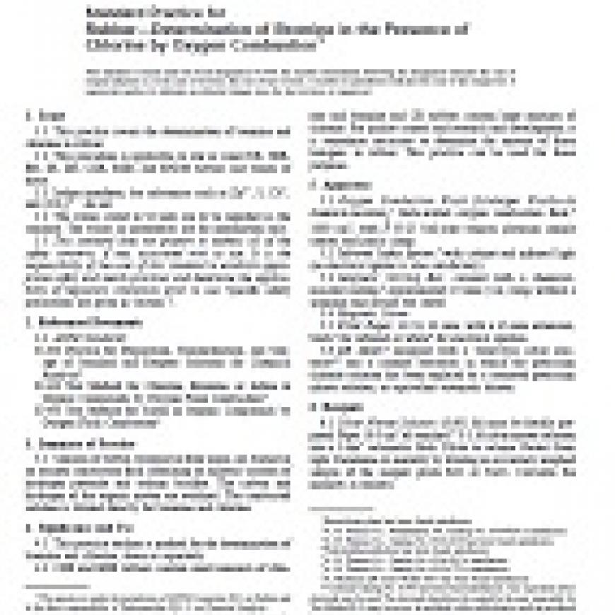 1.1 This practice covers the determination of bromine and chlorine in rubber.